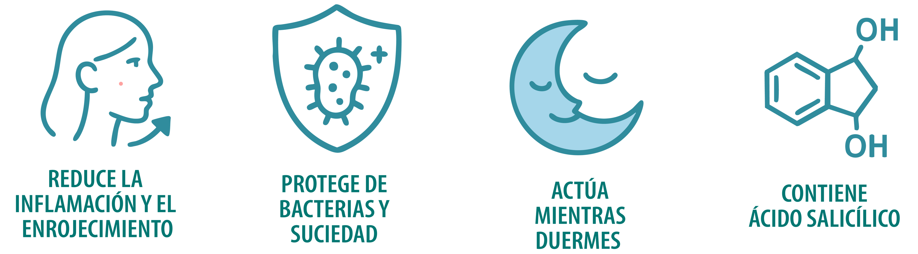 Actúan como una barrera protectora que evita que toques o contamines el área afectada. Al mismo tiempo, los ingredientes activos absorben las impurezas y reducen la inflamación.
